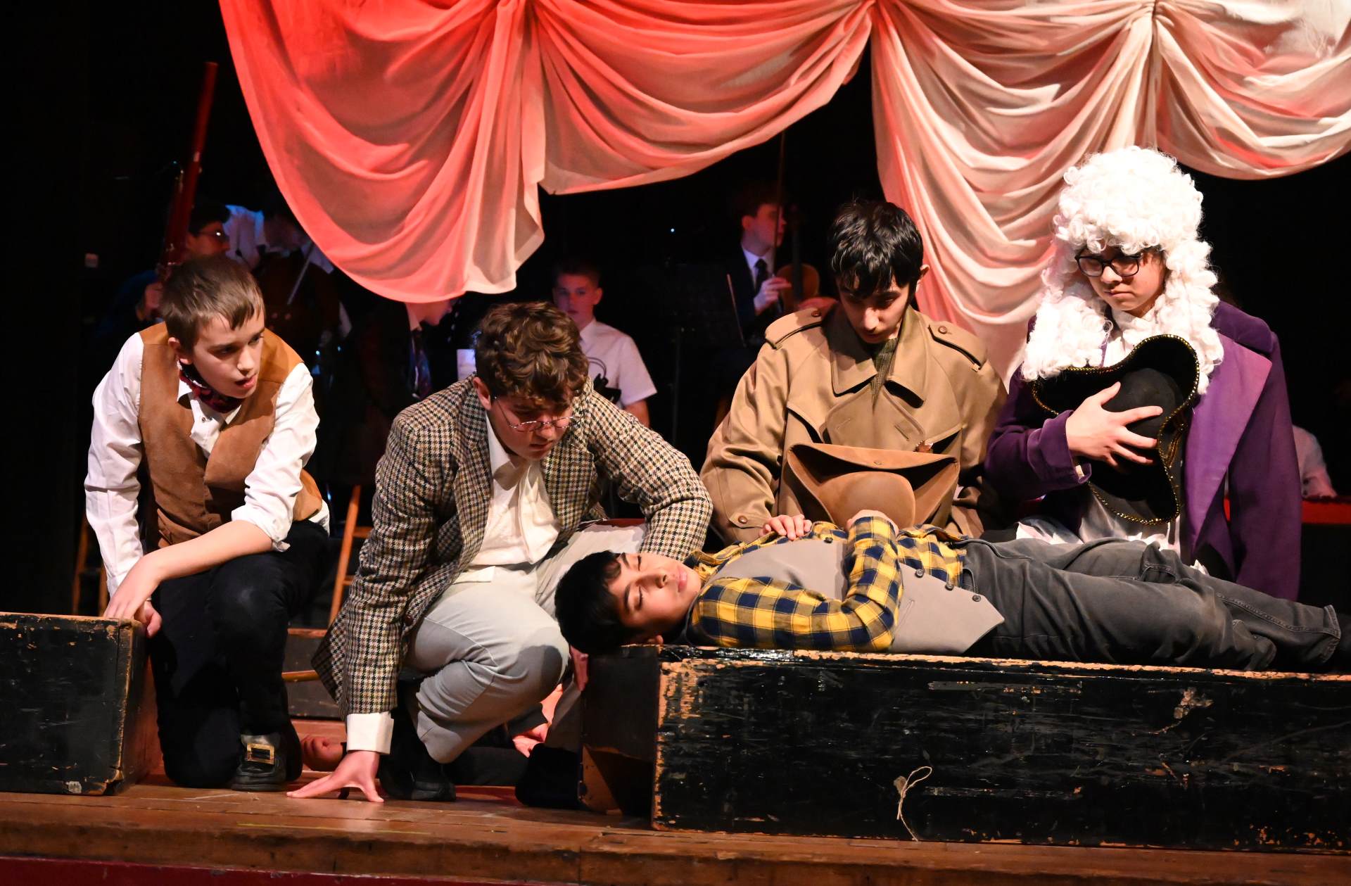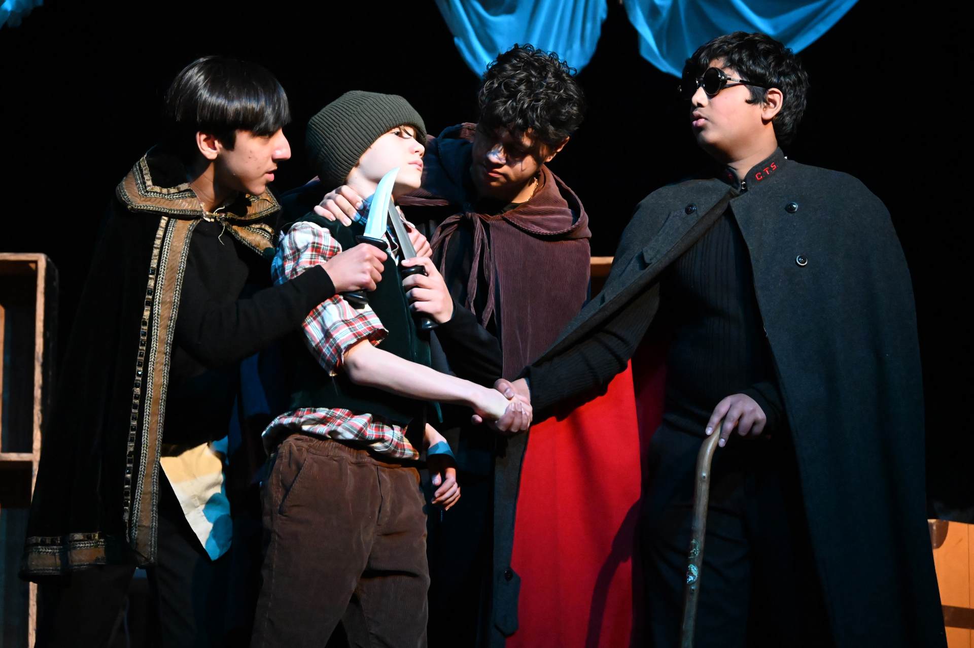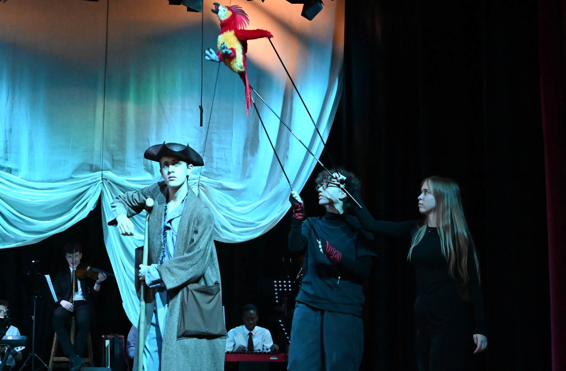 This year’s production was an adaptation of the Robert Louis Stevenson classic novel, ‘Treasure Island’. The audience were invited to come aboard on an adventure to find lost treasure in the company of young Jim Hawkins and the legendary Long John Silver. Nearly 60 students took part in this ambitious production – on stage as actors and musicians, and backstage as technical crew, costume and lighting. This superb and fun production brought heroism, mutiny, gun battles, treasure – plus a puppet parrot and lots of pirates!
