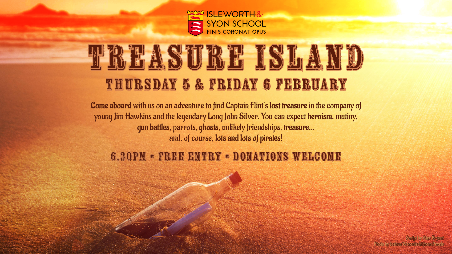 If you are able, we would be very grateful if you can give a donation. The money will go back into the performing arts department to support the organisation of this event and the other outstanding opportunities we offer our students. We recommend donating via SCOPAY; you can also do so on the evening itself.